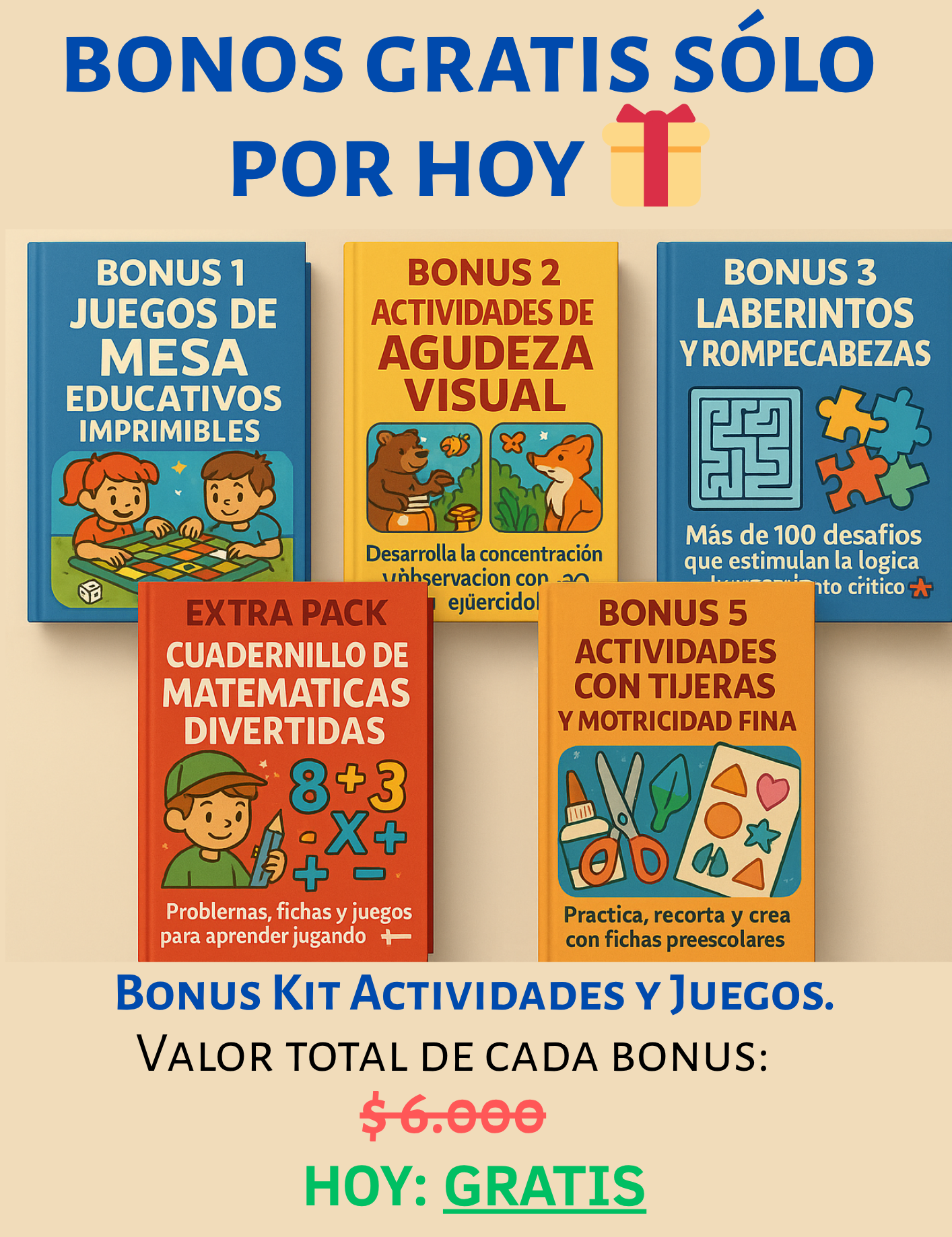 “¡Una locura la cantidad! Imprimí varias páginas y mis hijos se mantuvieron entretenidos toda la tarde. El bonus de tijeras está buenísimo para la motricidad.”